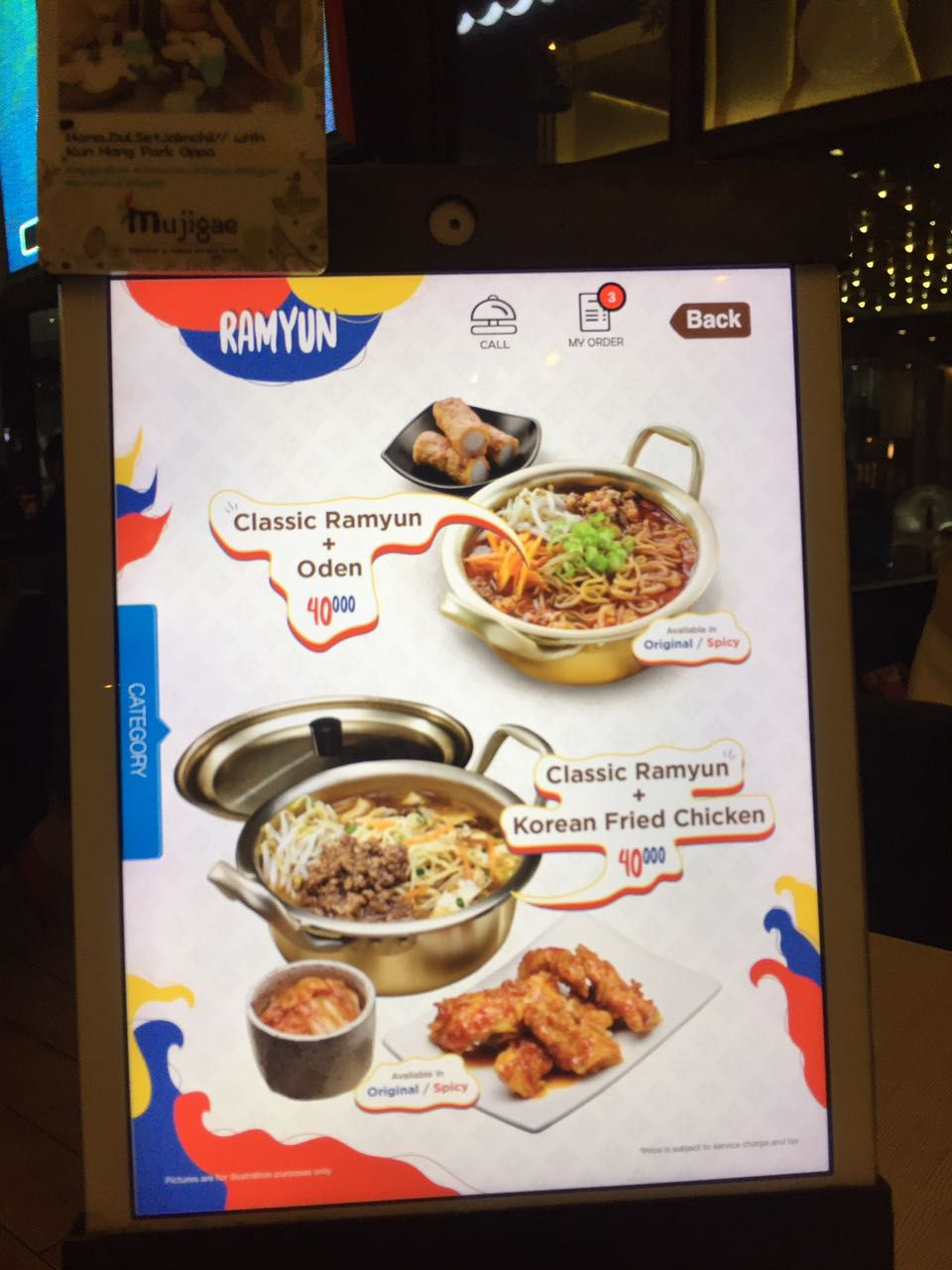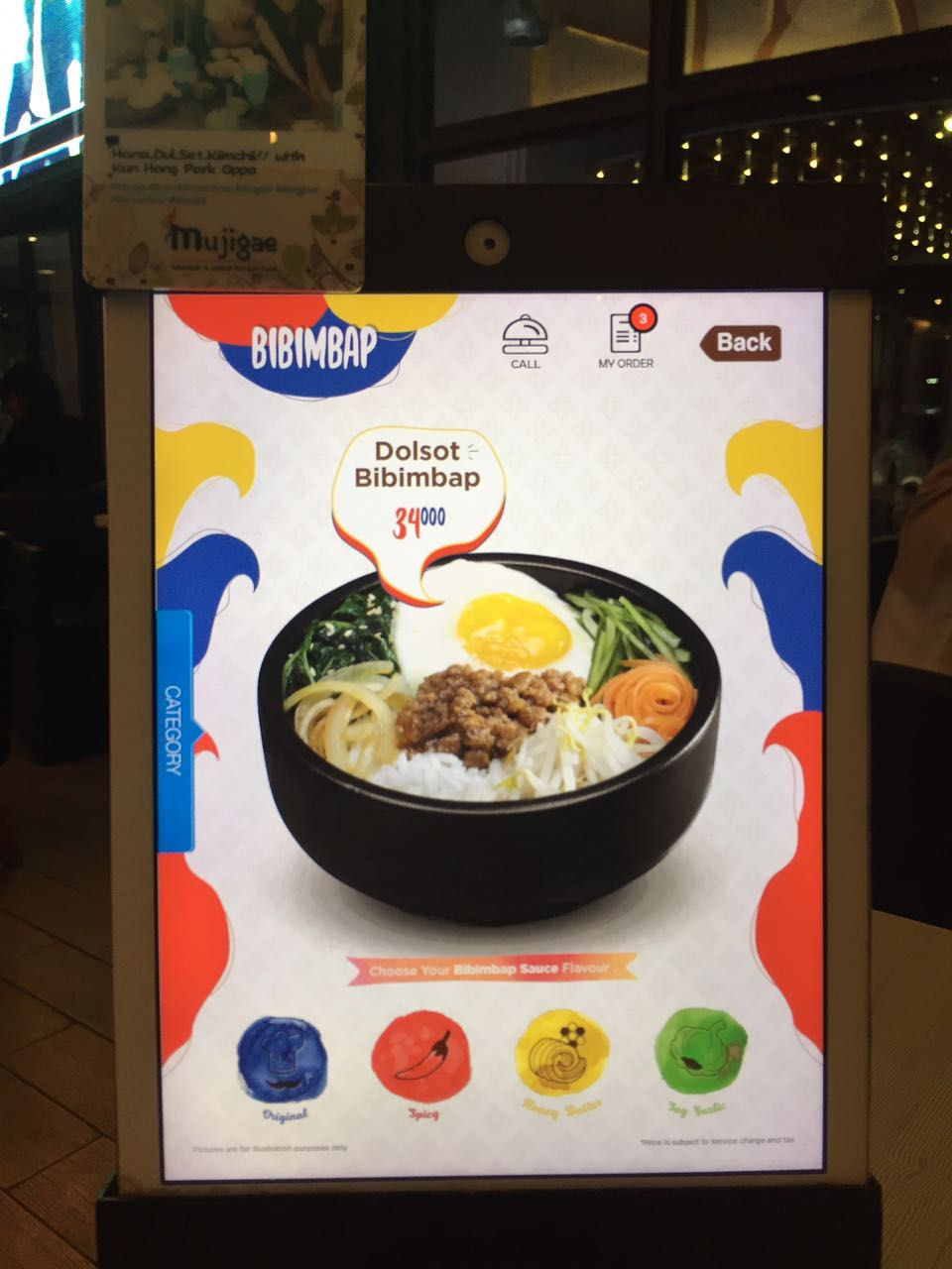 Setelah kita mendapatkan meja makan kita, maka kita akan langsung bisa melihat layar iPad di meja kita. Di iPad tersebut akan ada tampilan seperti gambar diatas. Kita tidak perlu repot-repot dengan buku menu. Cukup melihat layar iPad yang berada di meja kita dan hanya dengan klik kita bisa langsung memesan makan.